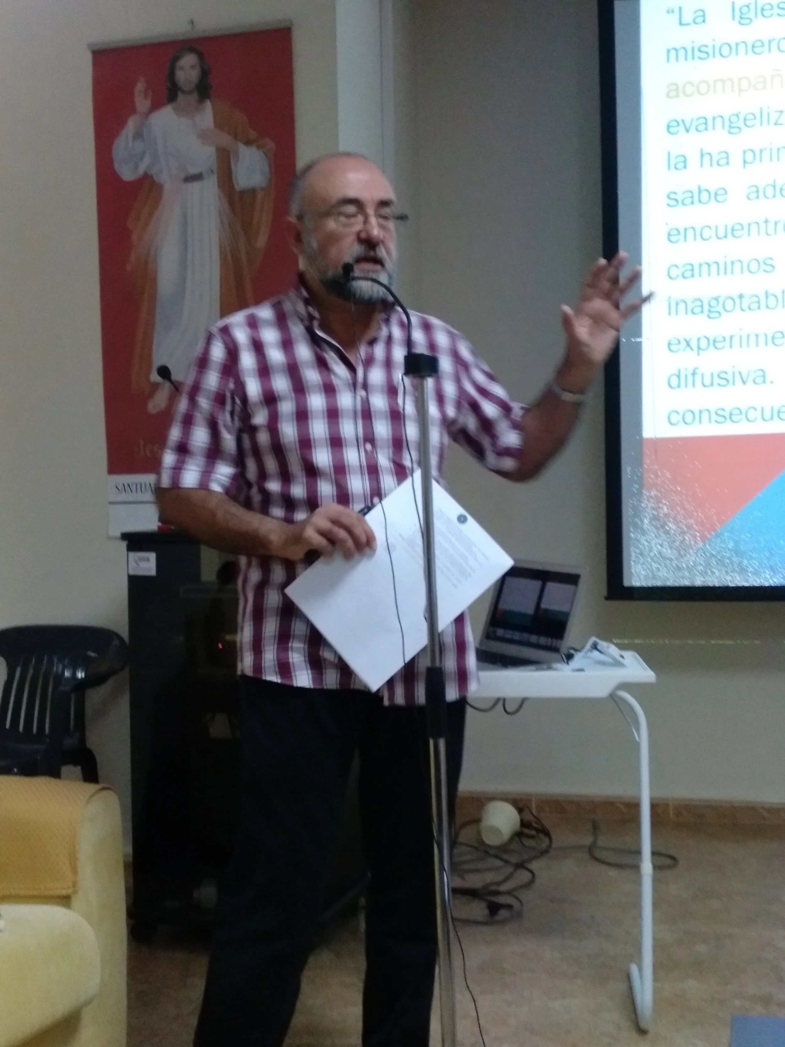Vino el equipo nacional de la ACG con su conciliarlo, el Rvdo. Sr. D. José Antonio Cano Cano, que nos ayudó a plantear un camino para la renovación misionera de nuestras parroquias; luego participó D. Salvador Ruíz, presidente de ACG Córdoba y Delegado Diocesano de Apostalado Seglar, que nos presentó el proyecto de la ACG como un itinerario de formación de laicos que responde en la actualidad al reto de transformación misionera de nuestras parroquias; y al final de la mañana tuvimos el testimonio de Emilio y Chari que desde Málaga nos contaron cómo en la ciudad hay 22 parroquias que están trabajando con mucho fruto con niños, jóvenes y adultos utilizando los materiales e itinerarios de la Acción Católica.